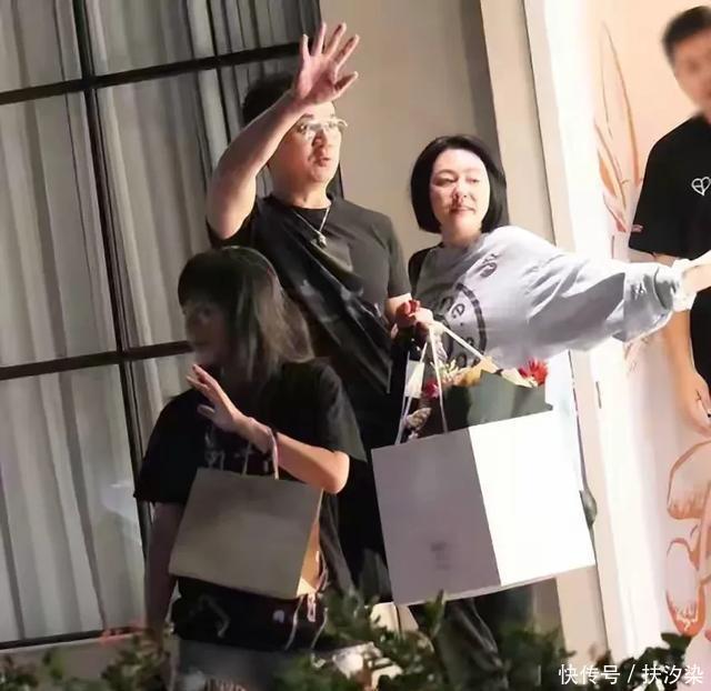 把家人都送走,小s和许雅钧最后离开,许雅钧一手拎着提袋的花束,一手挽着老婆小s!